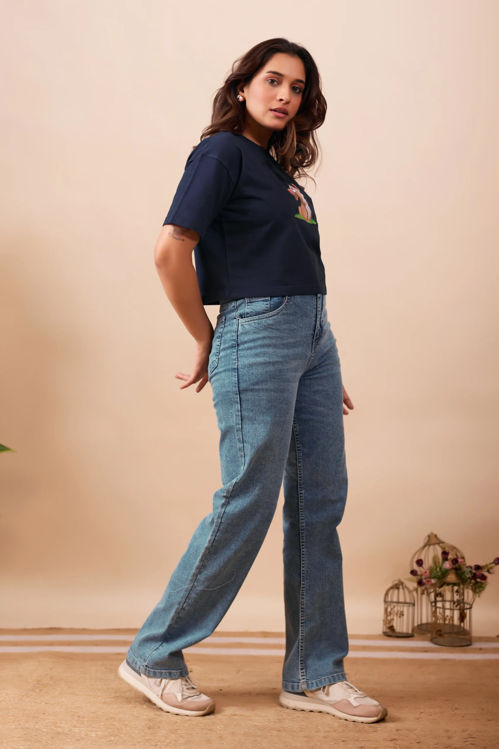 Soft, playful, and full of charm — the Blossom Bunny Oversized Tee is crafted from 260 GSM French Terry LoopNet fabric. Featuring an embroidered bunny with a floral crown admiring a butterfly, this tee brings cozy comfort and a whimsical vibe to your casual fits.