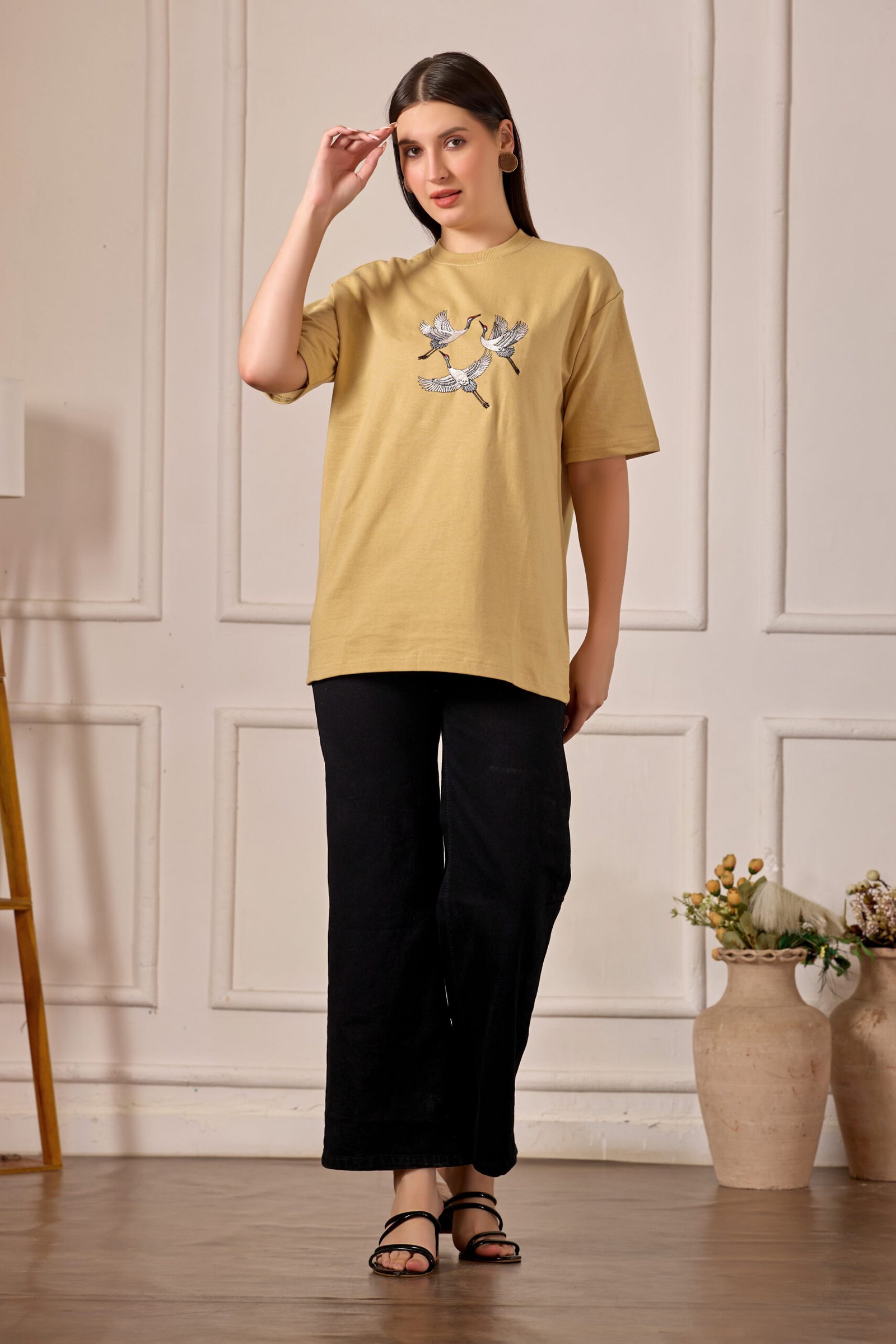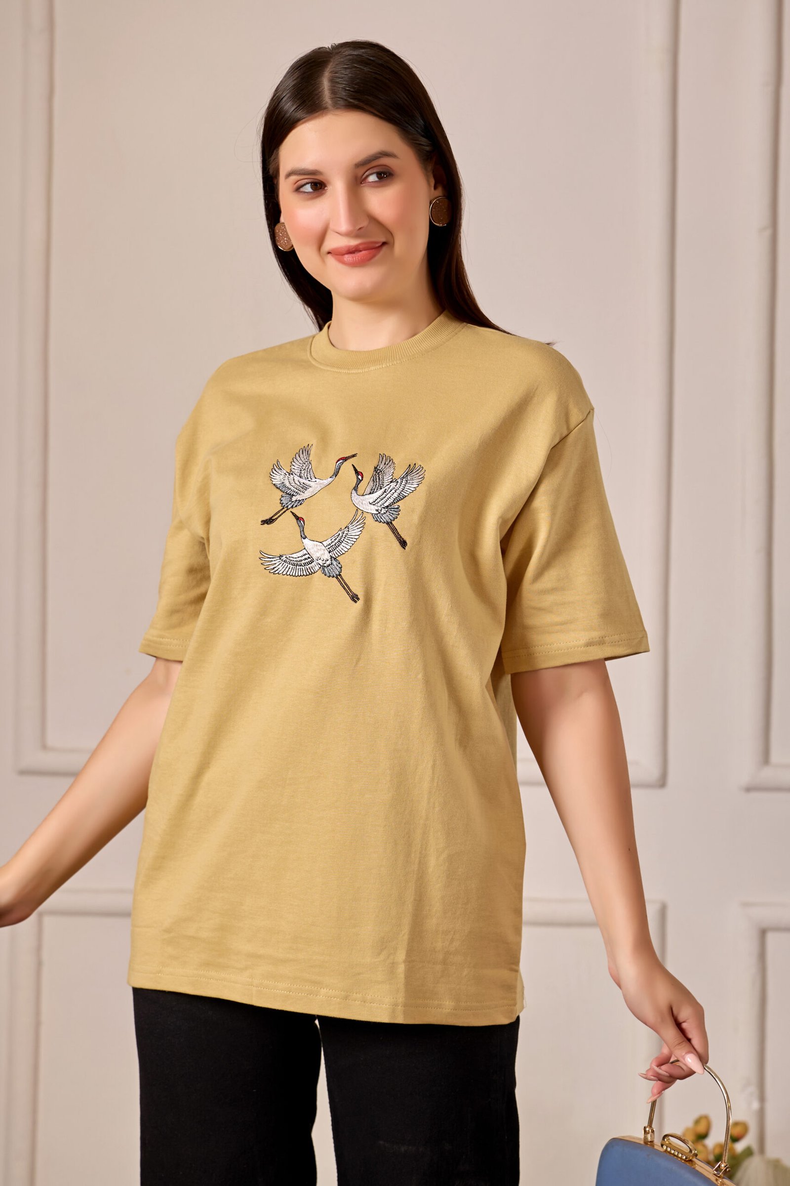 Home Women Collection Oversized T-Shirts For Women Golden Crane Serenity Tee