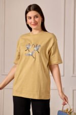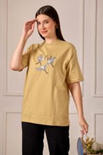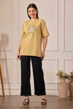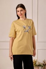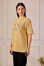 • Color: Mustard Beige (tee) with Black embroidery detailing