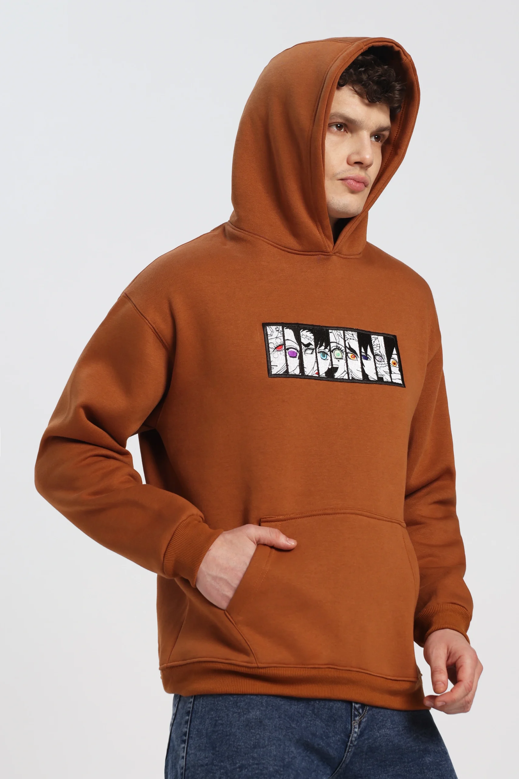 Unleash your strength with the “Hashira Eyes” Heavyweight Embroidered Hoodie in a rich Ember Brown